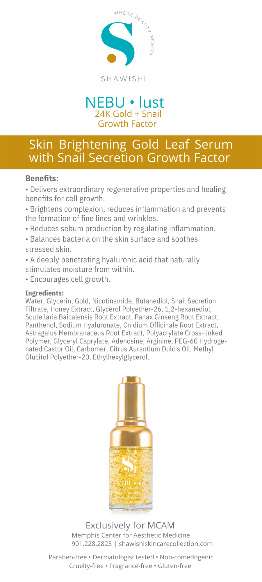 Water, Glycerin, Gold, Nicotinamide, Butanediol, Snail Secretion