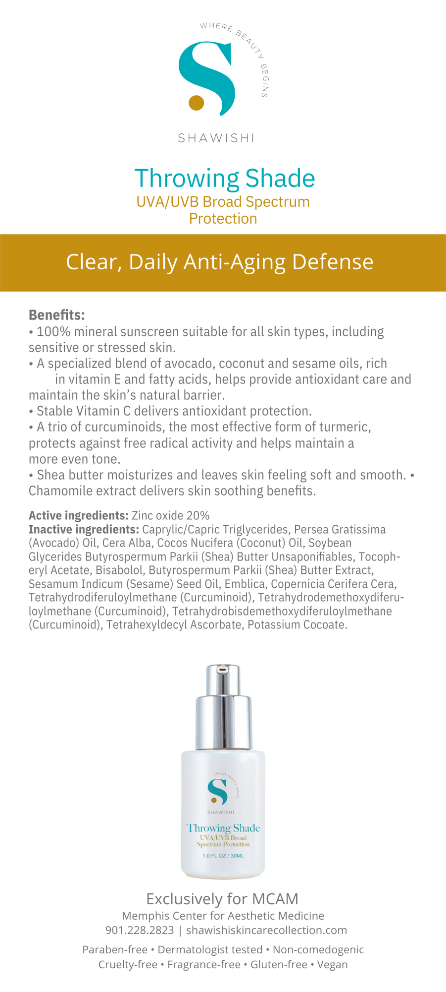Throwing Shade is a 100% mineral sunscreen and suitable for all skin types, including sensitive or stressed out skin.