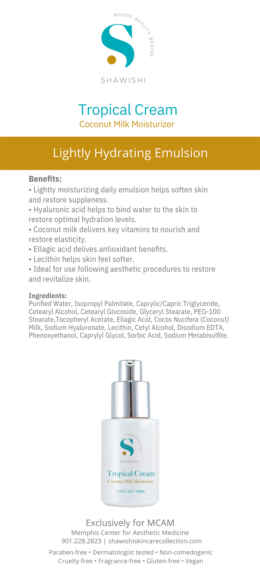 Tropical Cream is our gentle, lightweight nourishing skin emulsion that deeply moisturizes and softens skin with a perfect blend of Coconut Milk, thirst-quenching Hyaluronic Acid, and Lecithin.